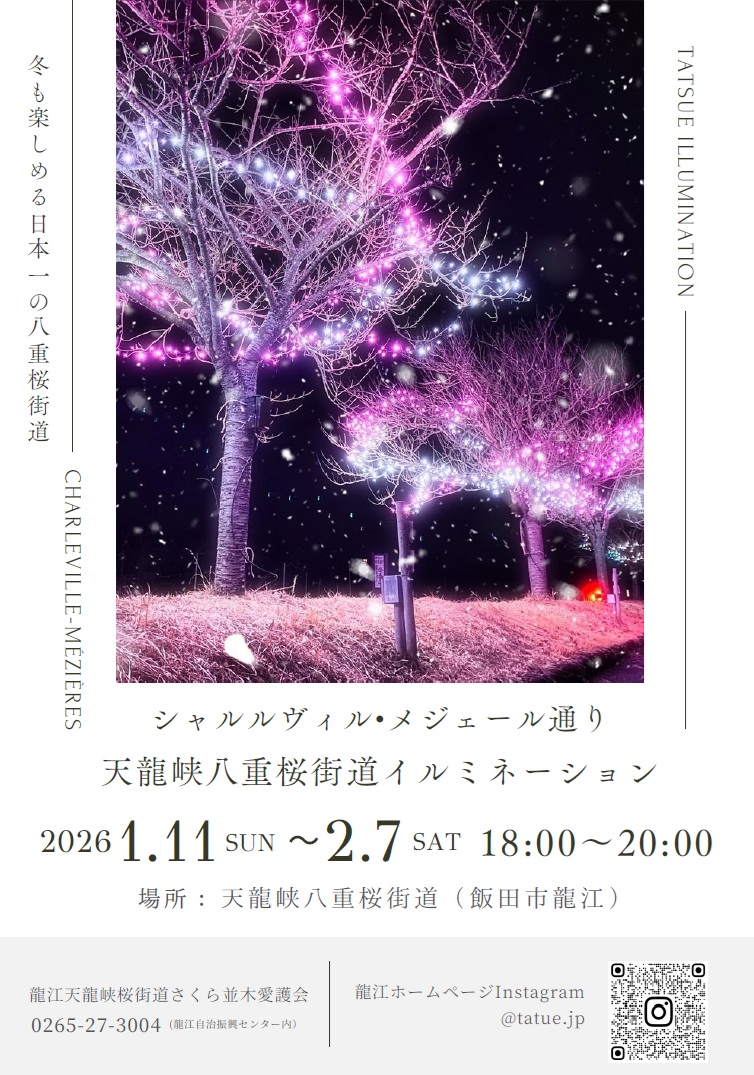 天龍峡八重桜街道「冬の桜イルミネーション」開催中!