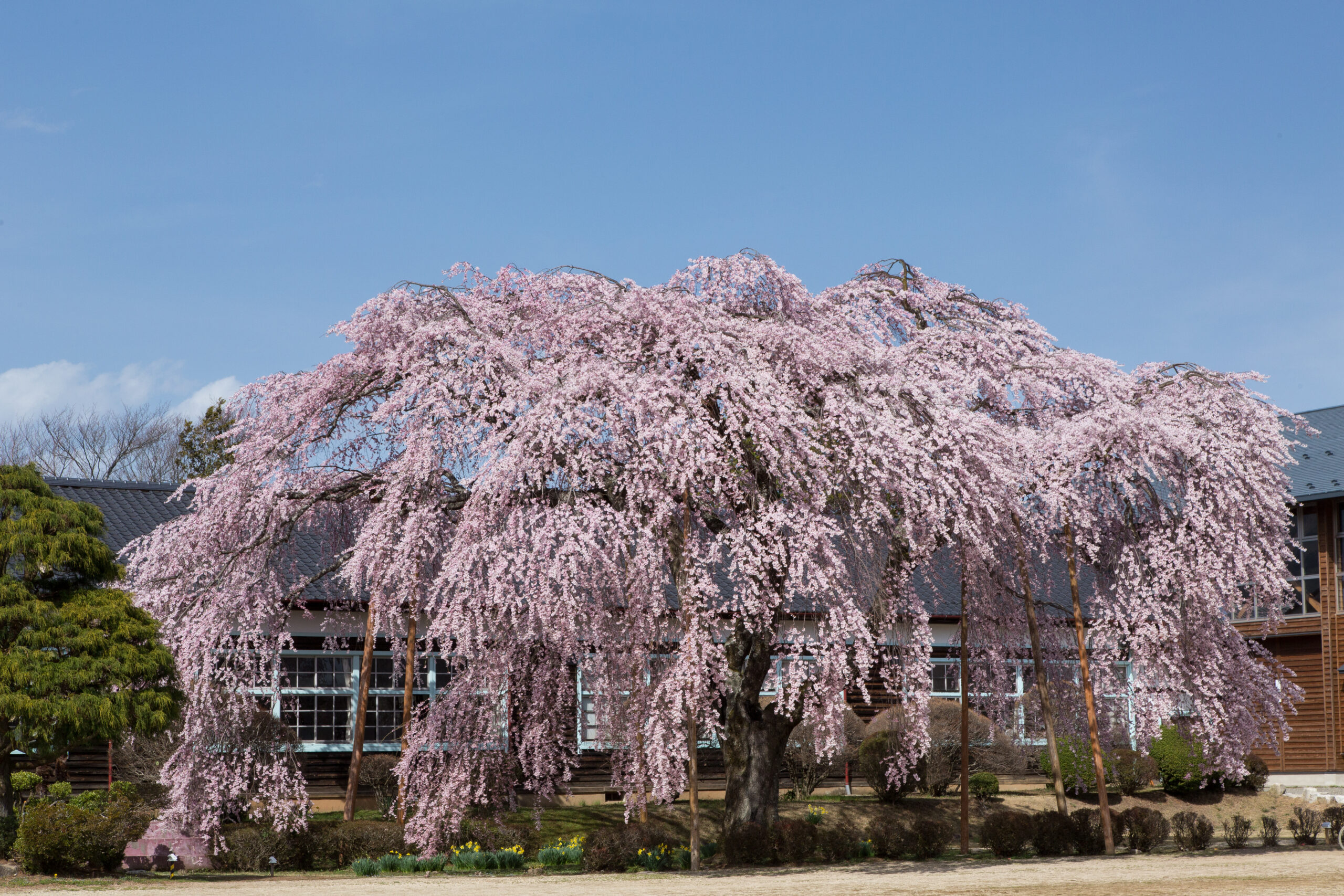 ・正面玄関前を開放します。(しだれ桜のすぐ横のとびら)