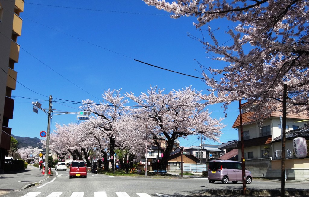 桜並木はホコ天だけれど、交差する広い道路は信号で直進のみ通行可。という事で交差点で立ちんぼでした。
