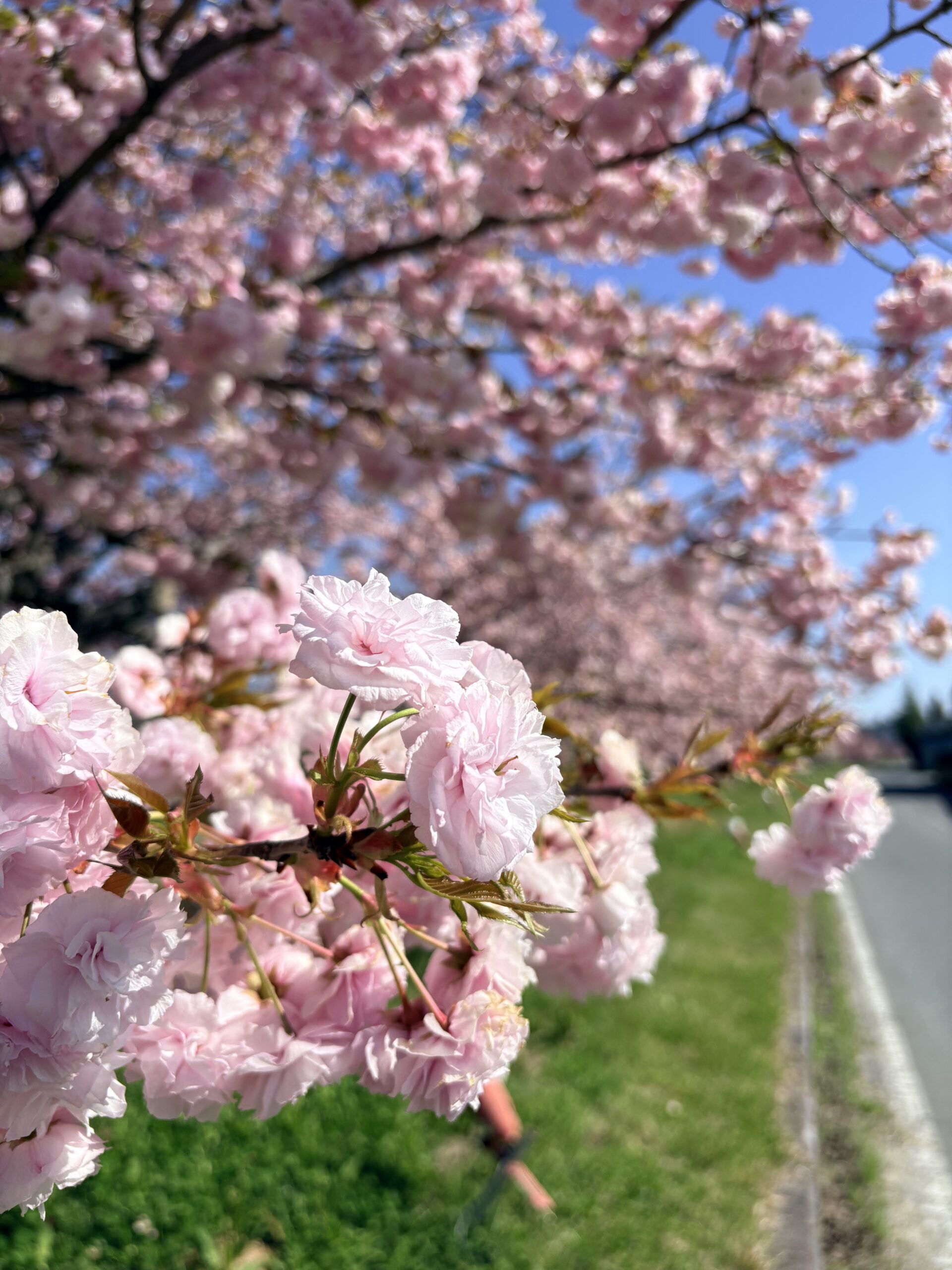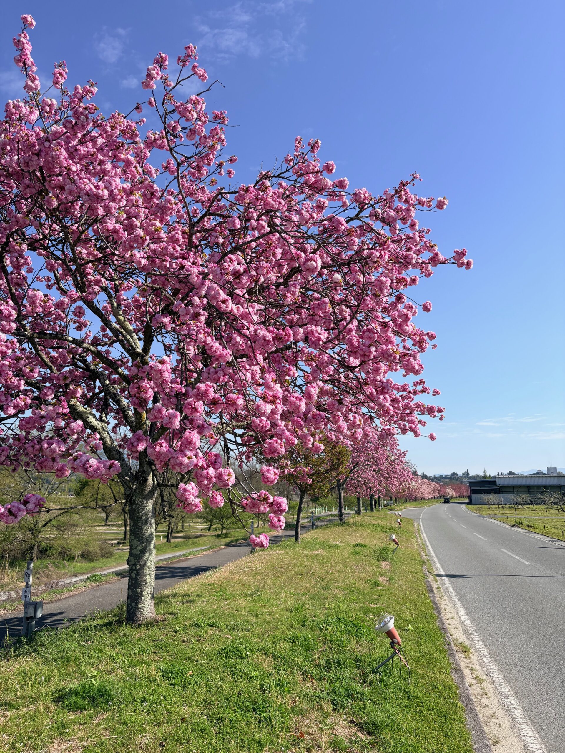 「名勝 天龍峡」から続く八重桜10品種200本の桜街道🌸(2㎞)。桜に沿って堤防沿いを歩けます。