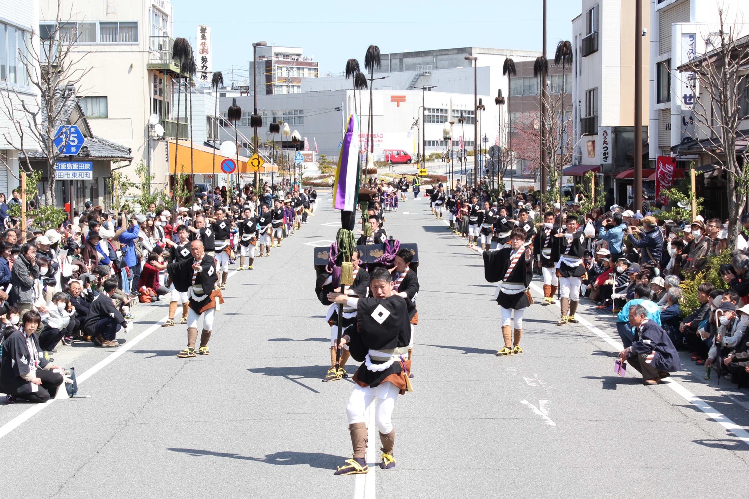 大宮諏訪神社の式年大祭にあわせて行われる。大名行列のほか、各地の獅子舞が一同に会する南信州最大の祭り。開催年:さる、とら年の3月下旬