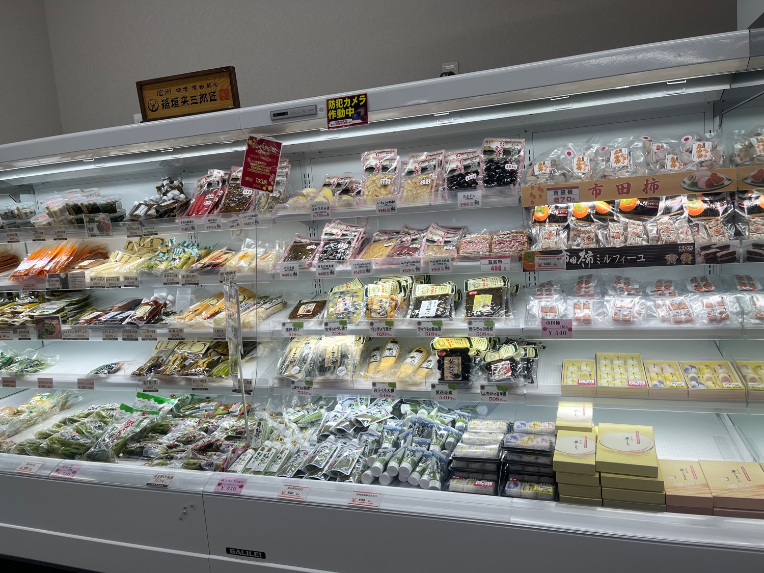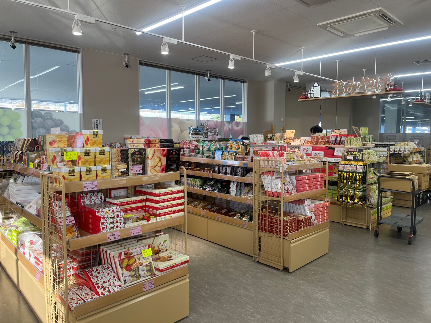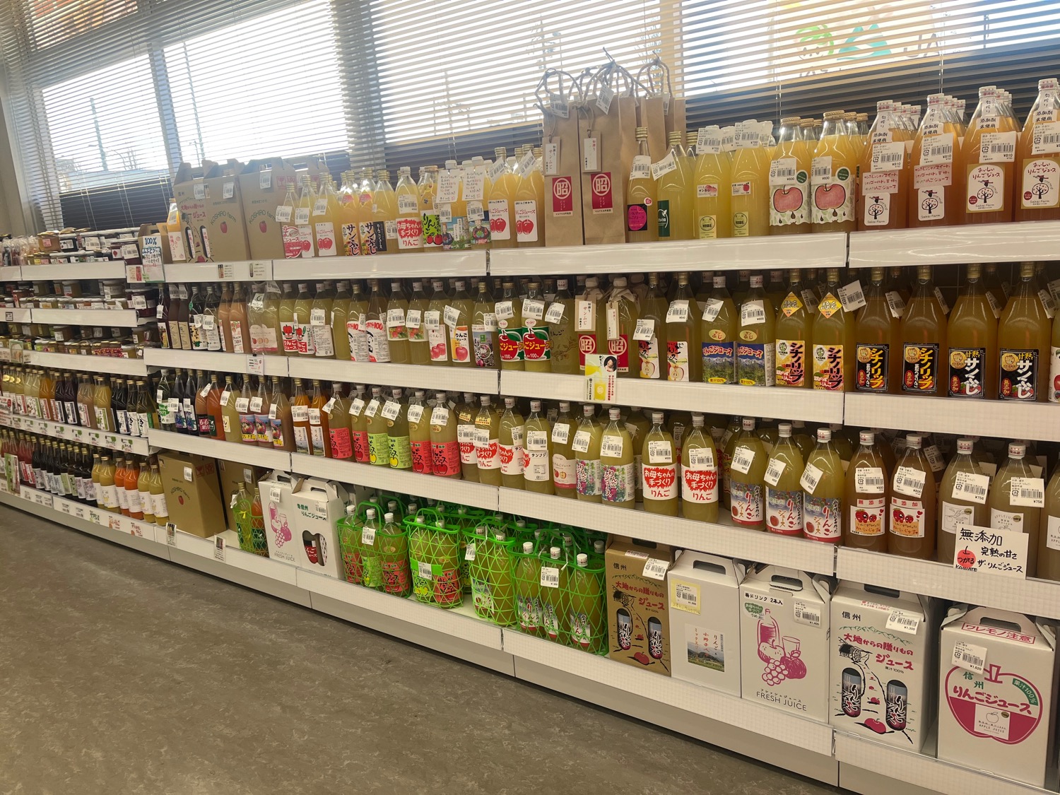 中央道・飯田インター降りてすぐ!りんごの里はりんごをはじめとした地元の果物が豊富で、野菜や精肉も扱う直売所。地域最大級のお土産菓子の取り扱いと、地元生乳を使用したソフトクリームがあり、気軽に立ち寄りできるお店です。