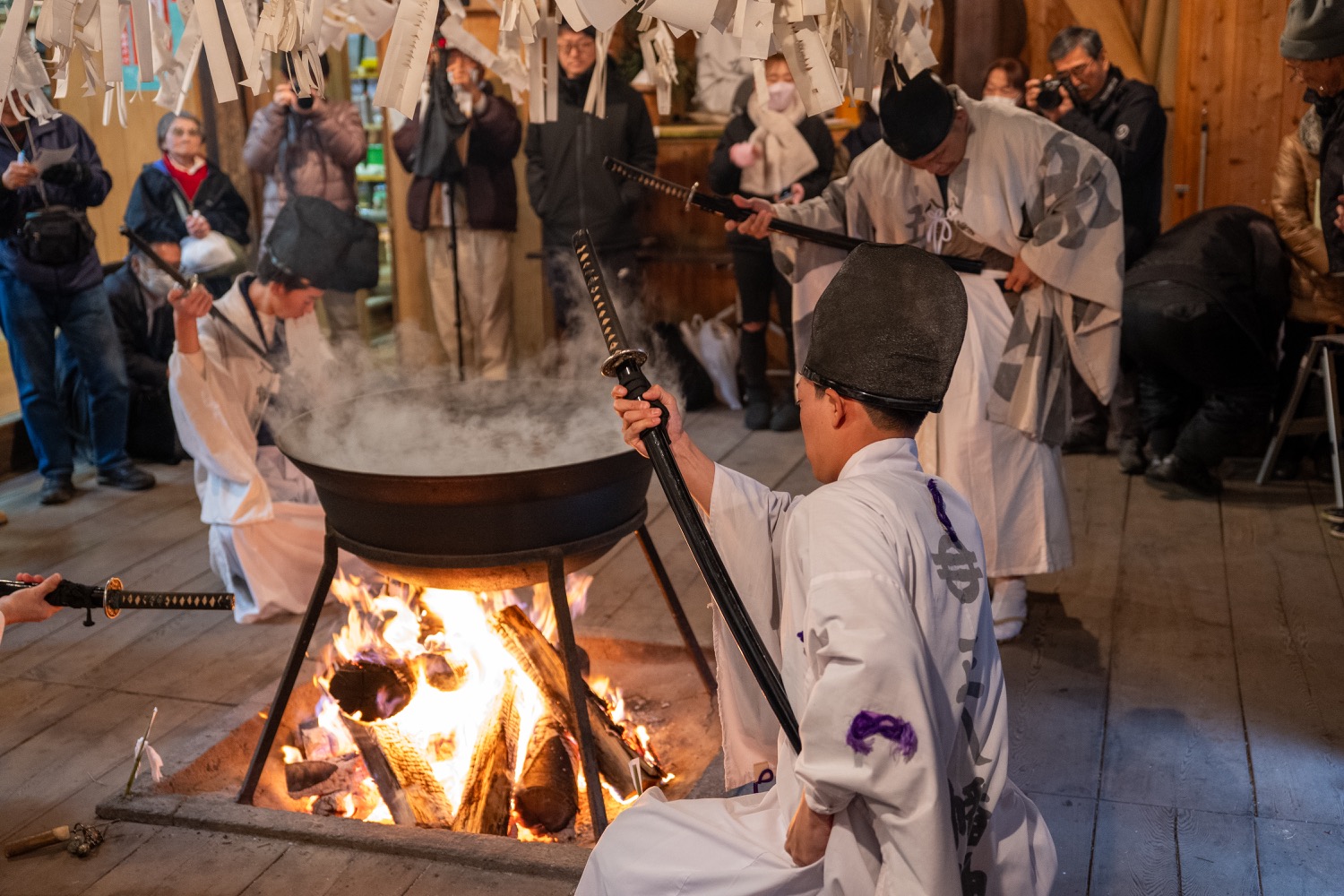 毎年12月に飯田市上村・南信濃地域で開催される湯立神楽。燃えさかる炎を囲んで神仏へ湯を献じ、新たな魂の息吹を起こすことで、素朴な信仰と暮らしを伝える。国の重要無形民俗文化財に指定されている。