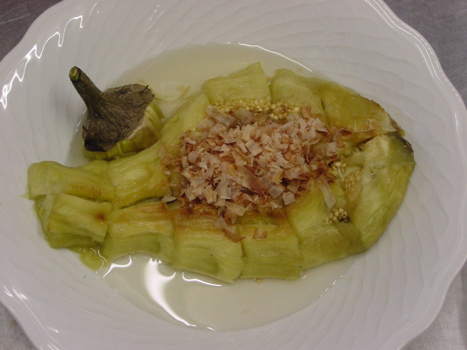最初に栽培を始めた田井沢さんの名前にちなんで「田井沢なす」と命名されましたが、地元では親しみを込めて「ていざなす」と呼んでいます。7月~11月まで収穫でき、大きいものは1kgにもなります。大きくても種が少ない。実が柔らかく、甘みが強い。天龍村内各施設で購入できます。